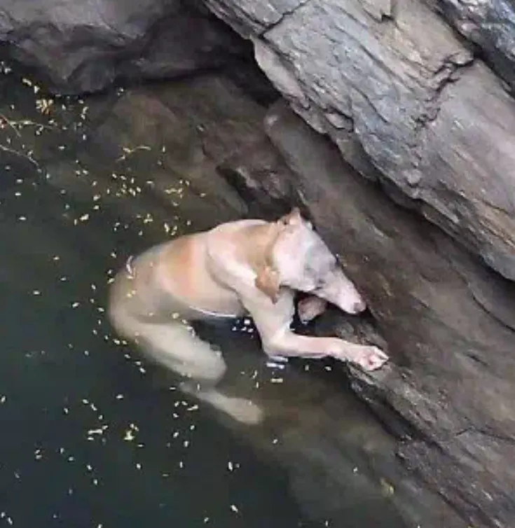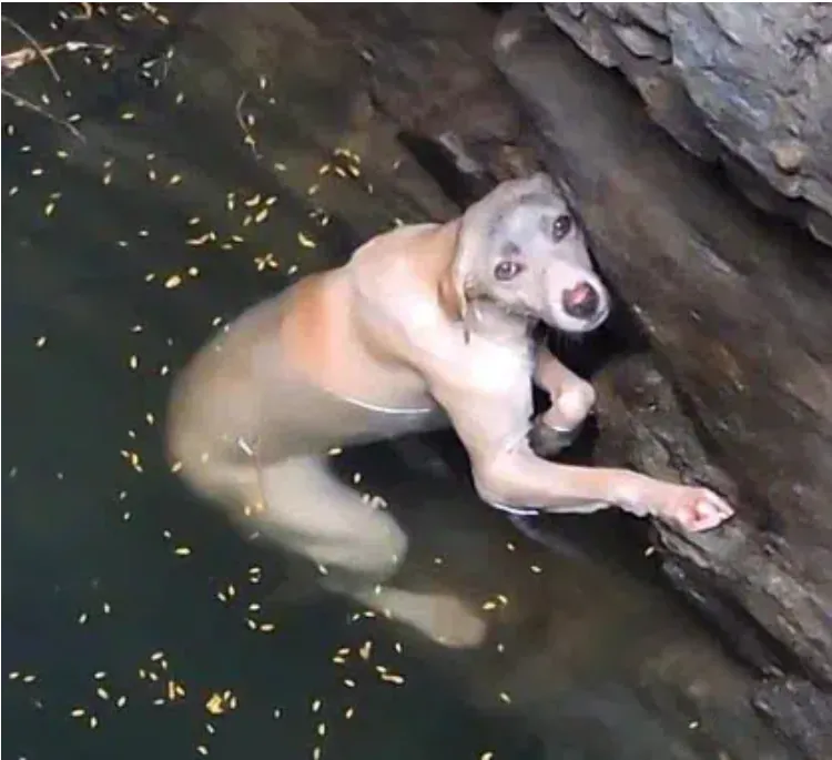 The well, tall and narrow, left her no way to escape on her own. The dog, stranded and disoriented, swam in circles, trying desperately to find a way out. She was tired, frightened, and helpless, but her instinct to survive kept her going, even as exhaustion began to set in.