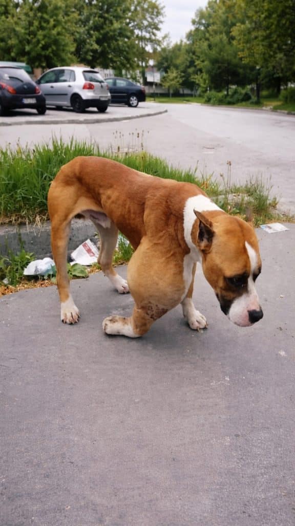 Barely a year old, Alphonzo was an American Staffordshire Terrier with cropped ears—signs that he had once belonged to someone. How he ended up alone, unable to stand, remains unknown. What was clear was his vulnerability. Despite obvious pain, he greeted people with gentle curiosity. His tail wagged weakly when someone approached. Even lying helpless on the ground, his spirit had not disappeared.