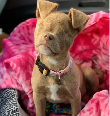 Puddin’s story began like so many others, with the joy of being a puppy, innocent and carefree. However, her early life was marred by neglect. At just five months old, Puddin was rescued by her first owners, but unfortunately, they failed to provide the necessary veterinary care when she developed a severe eye infection.