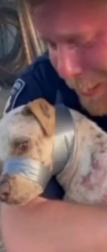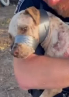 The dog was a Pitbull, young but ravaged by hunger and fear. His ribs pressed sharply against thin skin, each breath shallow and labored. What froze Hayes in place was the gray duct tape tightly wrapped around the dog’s muzzle.