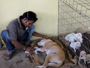 The puppies, once covered in the grime of the trash pit, were now safe, fed, and warm. For two weeks, the Animal Aid team provided the intensive medical care and “TLC” the mother desperately needed. Her body healed quickly, but the team knew that sending them back to a den filled with glass was not an option.