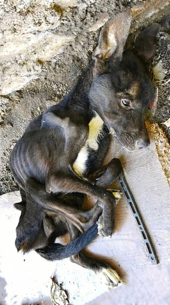 The dog, barely alive, managed a tiny, desperate wag of his tail.