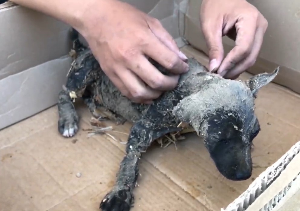 When we finally lifted him from the filth, the reality of his suffering became clear. His black fur wasn’t just dirty; it was a matted tangle of tar, sticky resin, dried leaves, and jagged pieces of trash.